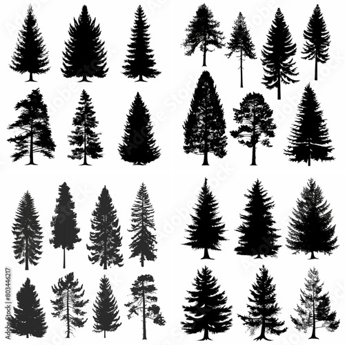 black tree silhouette set pure badge eco outline recreation breath emblem label protection graphic pine trunk woodland