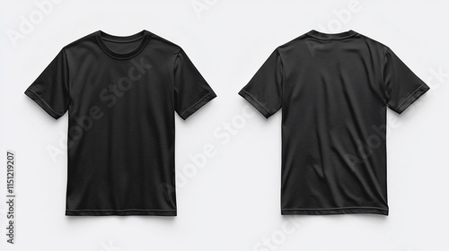 Black t-shirt mockup, front and back views, isolated on white.