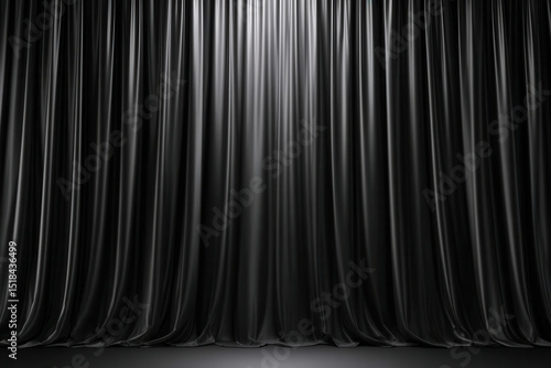 Black velvet curtain with soft light shining on fabric folds creating dramatic and elegant theater or cinema background scene