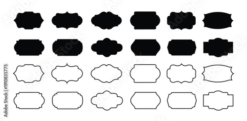 “Black Vintage Label Silhouette Vector Set with Retro Frames, Ornate Borders, Royal Crest Shields and Decorative Badges”