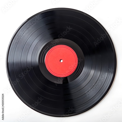 Black vinyl record lp album disc; isolated long play disk with blank label in red