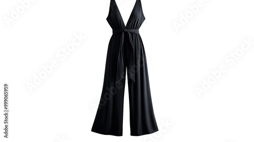Black v-neck jumpsuit with tie waist.