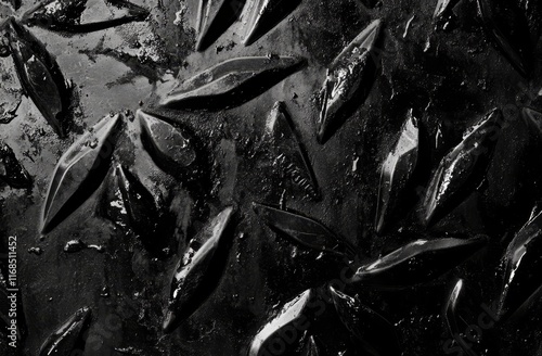 Black wet diamond steel plate texture.