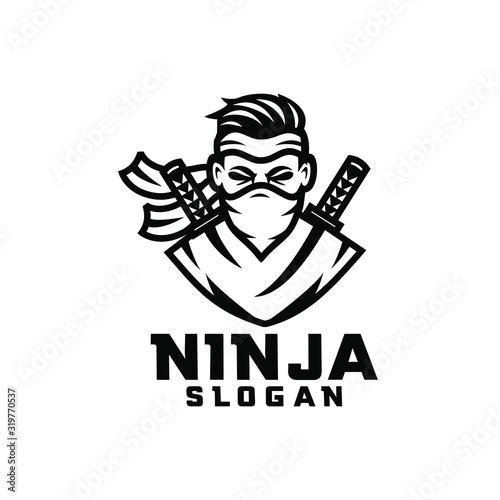 black white ninja character logo design cartoon