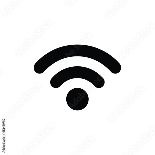Black WiFi Symbol with Three Arcs and a Dot on White Background