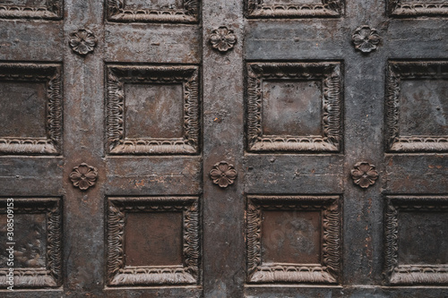 Black wrought iron openwork vintage metal doors