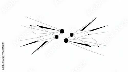 blackandwhite abstract composition with geometric shapes and lines forming a symmetrical pattern