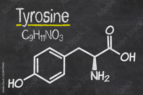 Blackboard with the chemical formula of Thyrosine
