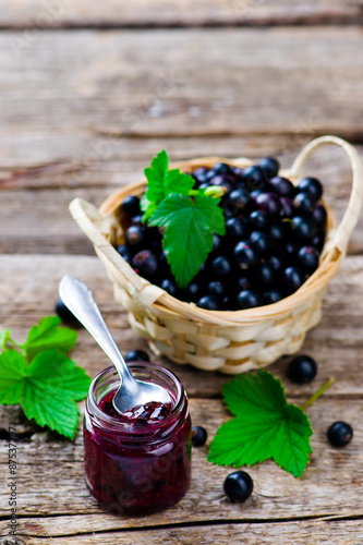 blackcurrant jam. style rustic. selective focus.