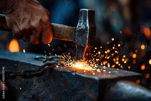 Blacksmith Hammering Heated Metal in Workshop