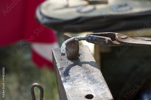 blacksmith makes a horseshoe close-up