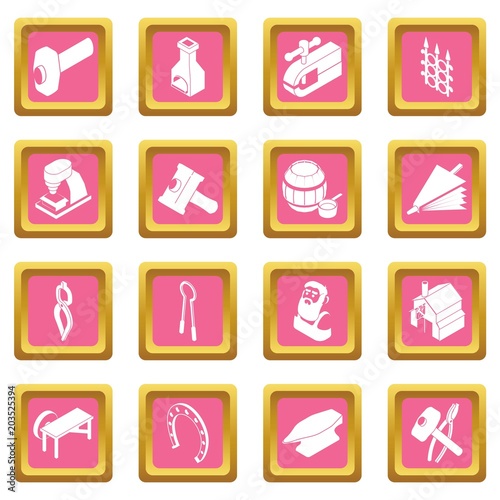 Blacksmith tools icons set vector pink square isolated on white background