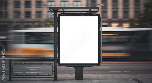 Blank Advertisement Display at Bus Stop in Urban City Area