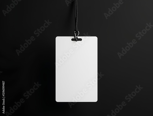 Blank badge mockup isolated on black, badge, vide, blanc, id, carte, sécurité, étiqueter.