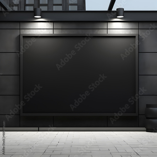 Blank black rectangle billboard display on the wall