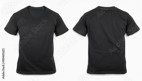 Blank black tshirt front and back isolated on white. Mock up template for design and print