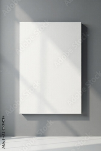 Blank Canvas Mockup Minimalist Interior Design Featuring Sunlight Shadows on a Grey Wall