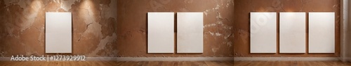Blank Canvases on Weathered Plaster Wall – A Triptych Composition Exploring Decay, Texture, and Minimalist Contrast