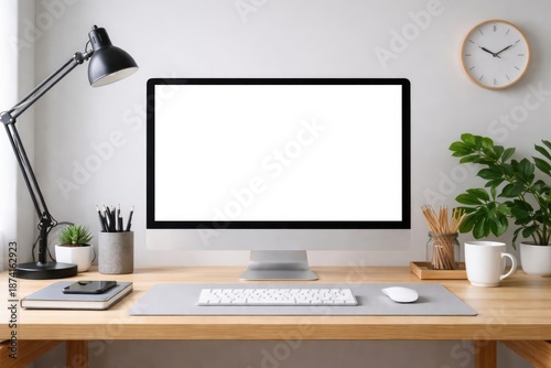 Blank computer screen on a modern workspace desktop with sleek design
