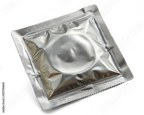 Blank Condom Pack Mockup isolated on white background. Packaging with a condom for your design and logo