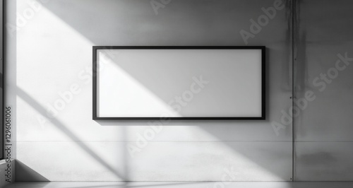 Blank frame on white concrete wall, oversized, engineering & design website