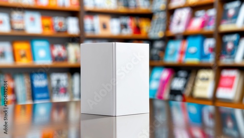 Blank gray hardcover book on bookstore showcase. 3D rendering illustration mock-up