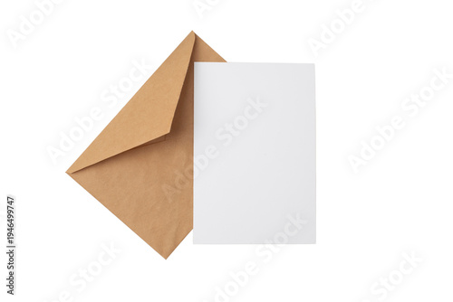 Blank Greeting Card Mockup with Envelope, Watercolor Paint Palette and Brush on White Background