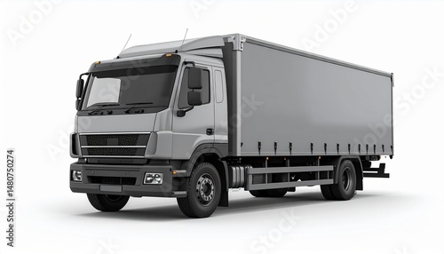 Blank Grey Single Cab Box Truck 3/4 Front Mockup