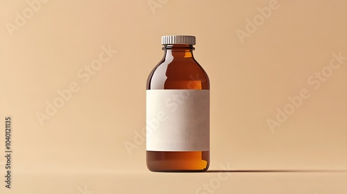 Blank mockup template of a product label wrapped around a bottle with soft shadows.