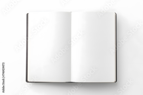 Blank opened notebook mock up top view isolated on white background