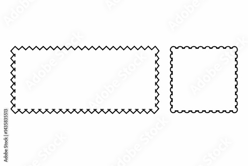blank postage stamp, Set of wavy edges rectangle frames. Rectangular shapes with wiggly borders. Picture or photo frames, empty text boxes, label, tags on white background