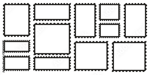 Blank Postage Stamp Vector Set – Rectangle and Square Stamp Borders and Templates