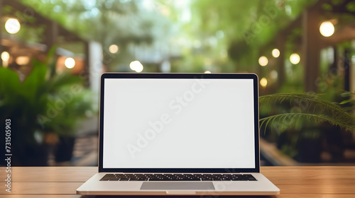 Blank Screen Laptop Mockup on Wooden Desk - Design Presentation, Portfolio. Office Workspace, Technology, Digital Device