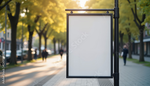 Blank signboard in urban setting during golden hour