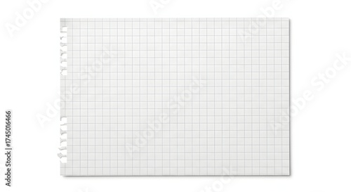 Blank square grid graph paper with torn edge on white background. Perfect for math, engineering, design, or educational templates.