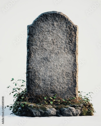 Blank Stone Headstone with Ivy Growth – Rustic Memorial Design - made with Generative AI