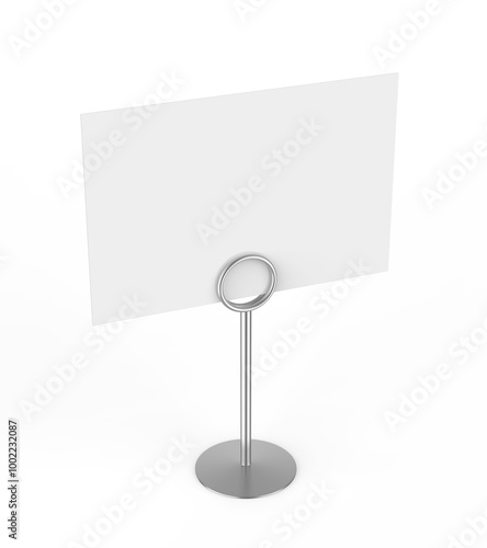 Blank table top clip sign holder stand 3d illustration.