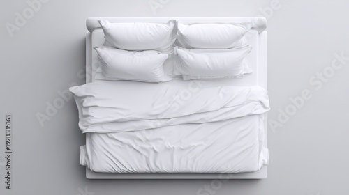 Blank white bed setup from above with mattress, sheets and folded duvet for template use, digital 3D render