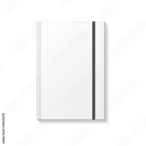 Blank white book or notebook with black elastic top view mockup template.