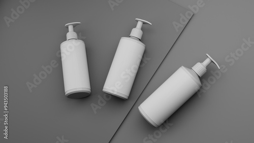 Blank white cosmetic bottle mockup on black background. 3D rendering illustration