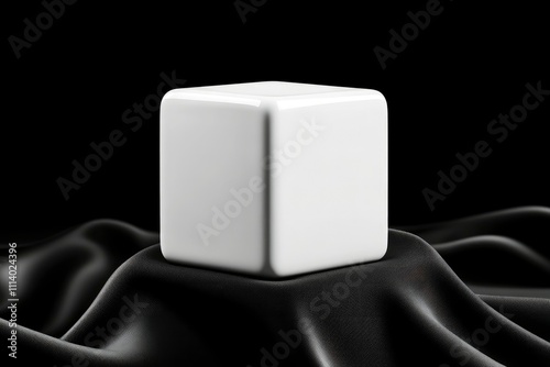 Blank White Cube on Black Silk Drape - Product Display Mockup