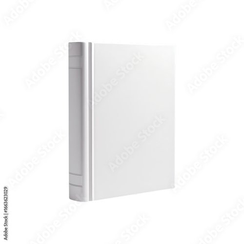 Blank white hardcover book standing upright isolated on transparent background