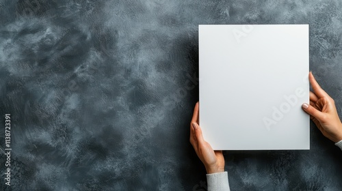 Blank white magazine in hand on gray surface with stack of magazines for creative advertising mockup