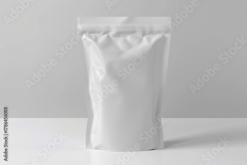 Blank white packaging pouch on a table