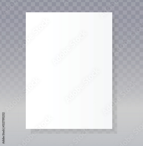 Blank white paper vector, A4 format. Realistic sheet, clean surface. Transparent shadow effect. Simple, versatile graphic. Perfect for mockups, presentations, and design layouts.