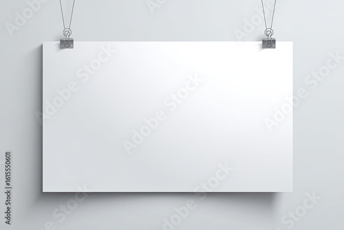 Blank white poster hanging on a wall