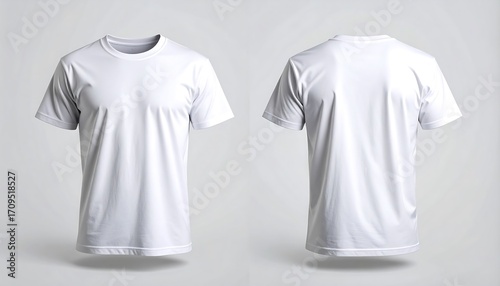 Blank white Tshirt front and back mockup with apparel template, studio shot, and casual wear.