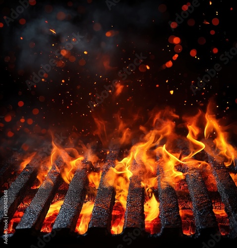 Blazing Fire Flames Grill Barbecue Charcoal Background Black