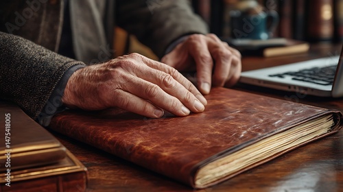 desk, laptop, traditional, modern, work, study, hand, typing, reading, research, vintage, technology, old book, digital, analog, learning, education, writing, office, workspace, scholar, historian, antique, library, cognition, wisdom, academic, professional, business, multitask, sharpened, concentration, hand gesture, finger, classic, retro, literature, manuscript, heritage, culture, history, intellectual
