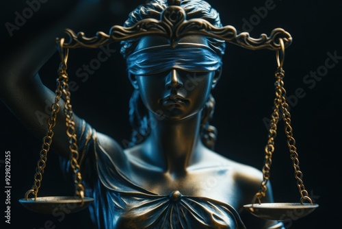 Blindfolded Lady Justice embracing scales and broken shackles, symbolizing the transition from punishment to reform